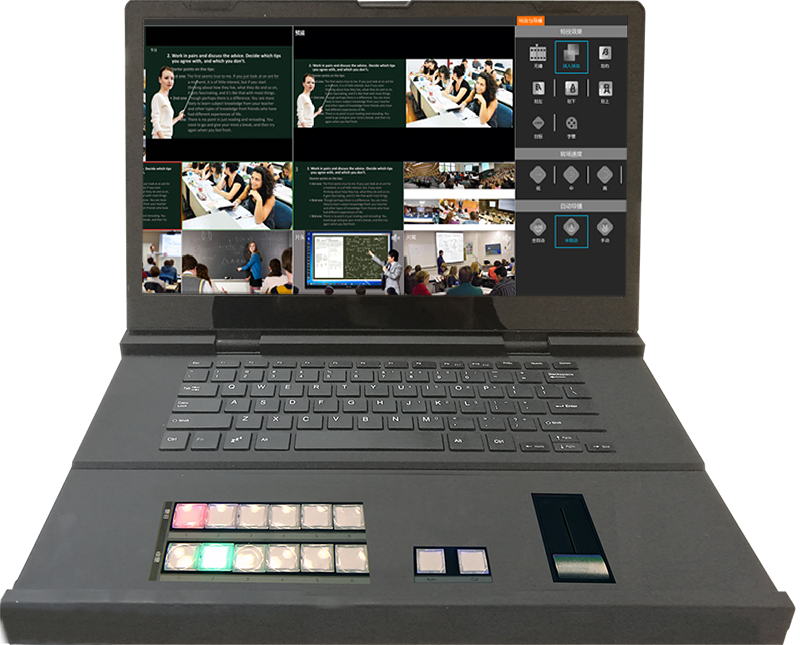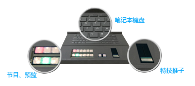 特技切换键盘支持特技推子、节目、预监直切按键、录像控制,笔记本键盘可以输入录像信息,操作简单。
