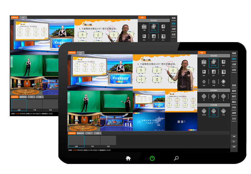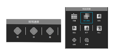 节目画面切换支持多种特技效果,包括无缝、淡入淡出、划像等,专场速度高、中、低可调。