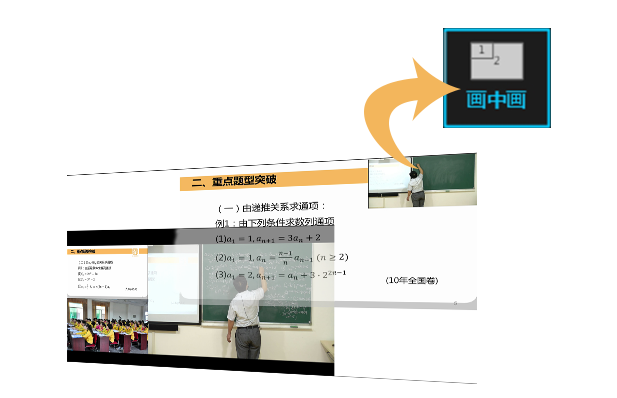 节目和预监窗口同时可以设置成为画中画模式,画中画模式支持用户自定义,节目和预监画中画切换过程支持特技效果