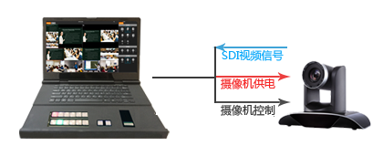 连接便携录播的摄像机采用一体化线缆连接,在采集摄像机视频图像的同时,为摄像机提供供电,同时可以控制摄像机的云台和变焦。