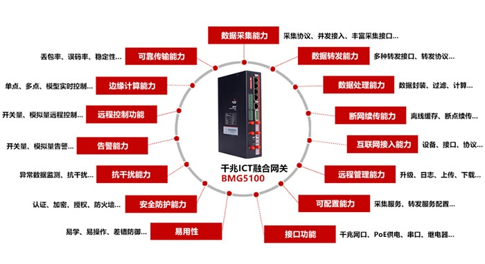 ICT是信息、通信和技术三个英文单词的词头组合(Information Communications Technology),例如BMG5100多功能融合网关,具备先进的设备接入能力、数据采集能力、边缘计算能力、5G/4G/有线等综合通信传输能力等,实现对物联网系统的大范围、多设备的数据交互和全程控制。