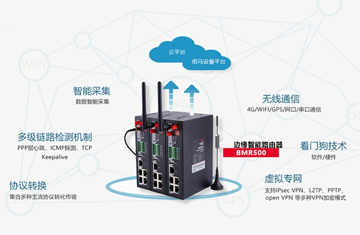 实现将有线/4G全网通联网方式、高速路由、WIFI支持、本地存储、设备监测及前端设备控制等功能集合一体,丰富的行业接口和应用功能接口,支持对复杂功能的边缘设备的一站式接入,提高数据通信的集中化水平和高效率。